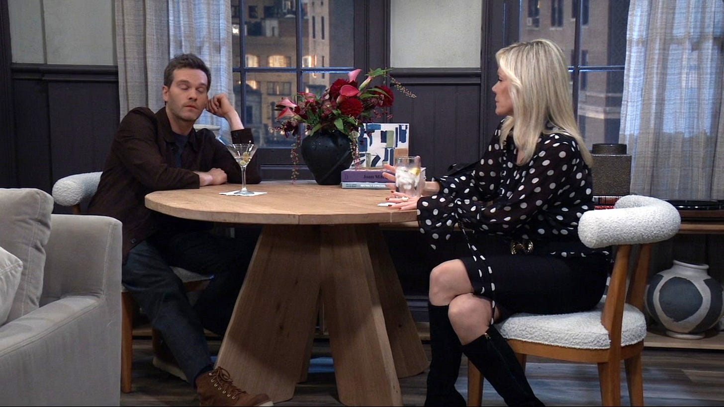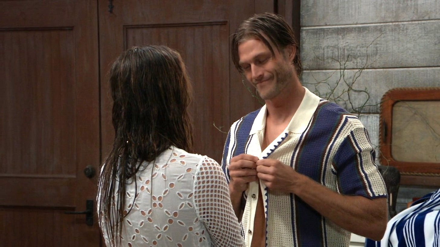 Jason and Tracy were alone in the house, which gave them space to process… and breathe. Tracy told Jason a touching story of Monica going to care for him at the gatehouse when he was sick as an infant. Monica had previously wanted nothing to do with him and wouldn’t allow him in the house. Afterwards, Monica fell in love with the child. (A bit retconned, if memory serves, but okay, they made the clip fit to their version of the story.)